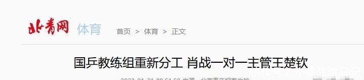 北青网体育|国乒教练组重新分工 肖战一对一主管王楚钦 20230121