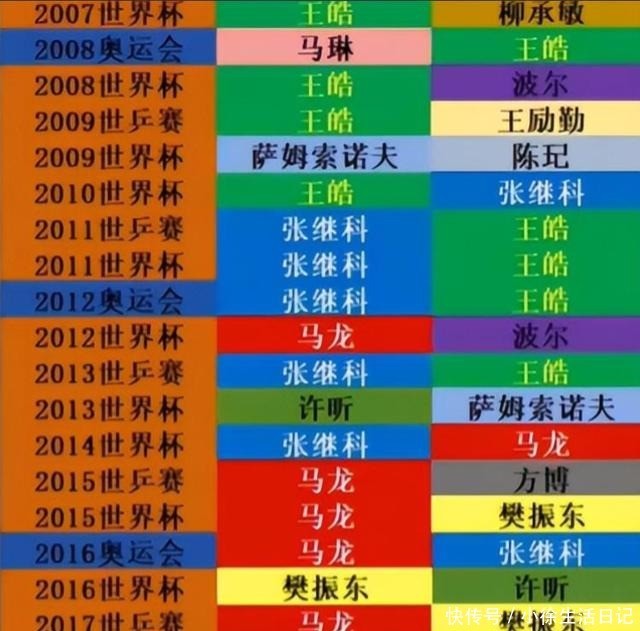 此后2011年世界杯、2012年奥运会、2013年世乒赛、2014年世界杯,都是他摘得了男单金牌。