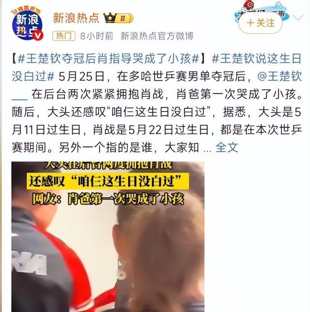期间,他和王楚钦合照以及孙颖莎击掌等话题也登上了热搜。