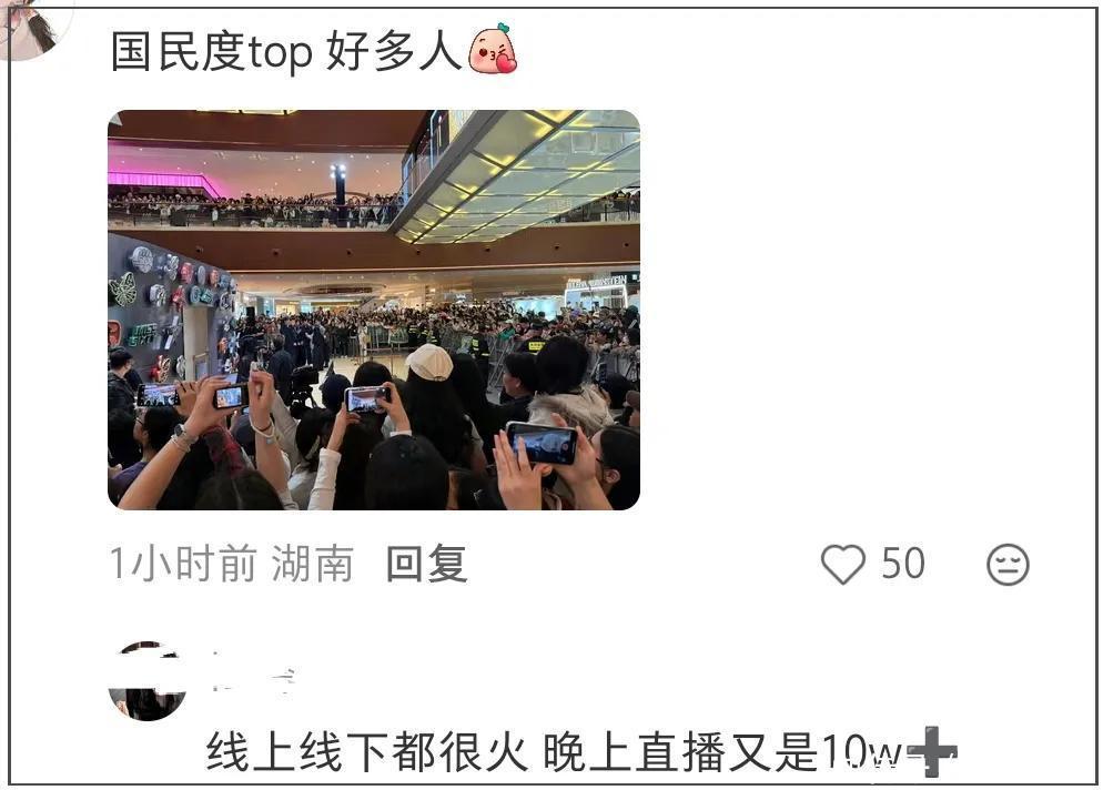 生图被大篇幅嘲讽后,粉丝们开始拿人气转移视线,比如晒杨幂的活动线下图以及直播间人数,从数据上来看,杨幂的人气还处在高峰。线下商场人流围了几圈,线上观看数据也有10万+,作为一个老牌流量,相当不错。