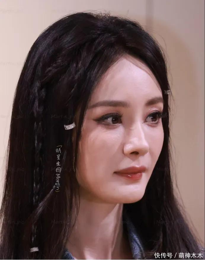 而粉丝的精修图则很会遮掩缺点,过度模糊的修图让杨幂看起来年轻不少,脸型也修饰得很自然,年龄一下子减了下来。而这种模糊的画质也提升了杨幂的造型质感,只是编发还是有些突兀,不够大气。